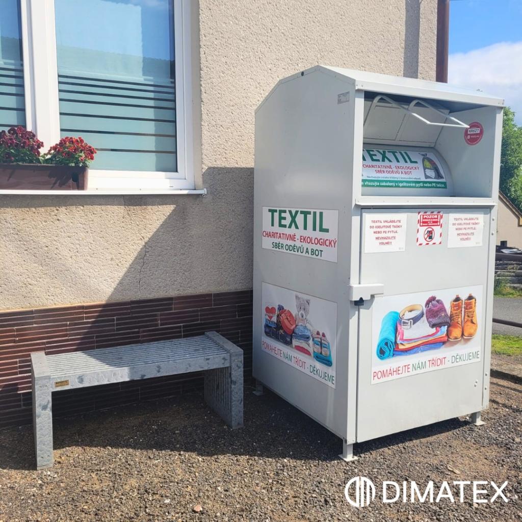 rádi bychom Vás informovali o spolupráci mezi obcí a společností Dimatex. Společnost Dimatex zajišťuje charitativně ekologický sběr textilu a bot. Zároveň průběžně renovuje stávající síť nádob na textil. Pomozte přispět ke zlepšení životního prostředí.