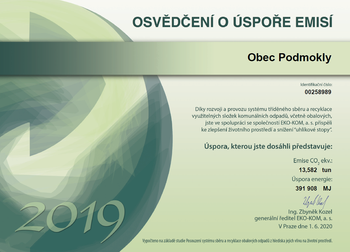 Díky recyklaci a využití papíru, plastů, skla, kovů, nápojových kartonů a dalších komodit v rámci tříděného sběru a využití odpadů v systému EKO-KOM bylo v roce 2019 uspořeno 21,6 mil GJ energie, což pro představu v průměru spotřebuje za rok více než 332 tisíc domácností. Na této úspoře jsme se také podíleli. Děkujeme všem občanům, že třídí odpad, čímž pomáhají ke snižování odpadu na skládkách, ke zlepšení životního prostředí a snížení uhlíkové stopy.