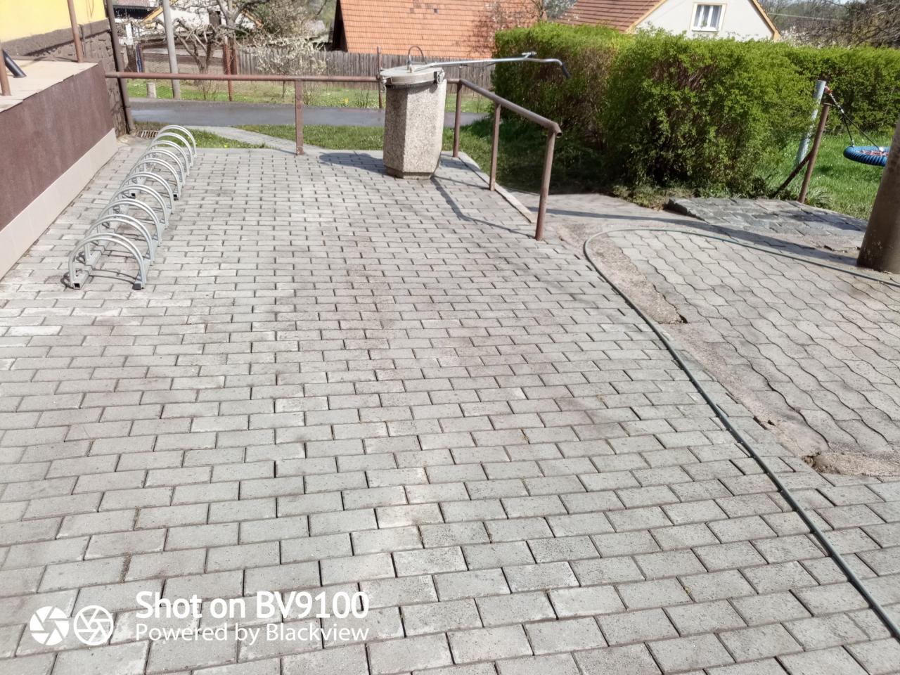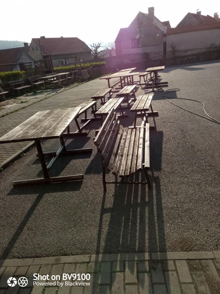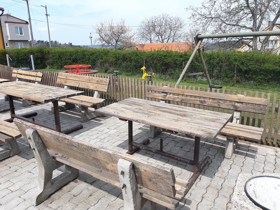 Vyčištěna byla venkovní dlažba před kulturním domem včetně zahubení a vytrhání plevele, lavičky a stoly, hrací prvky na dětském hřišti, které byly ještě vydezinfikovány.