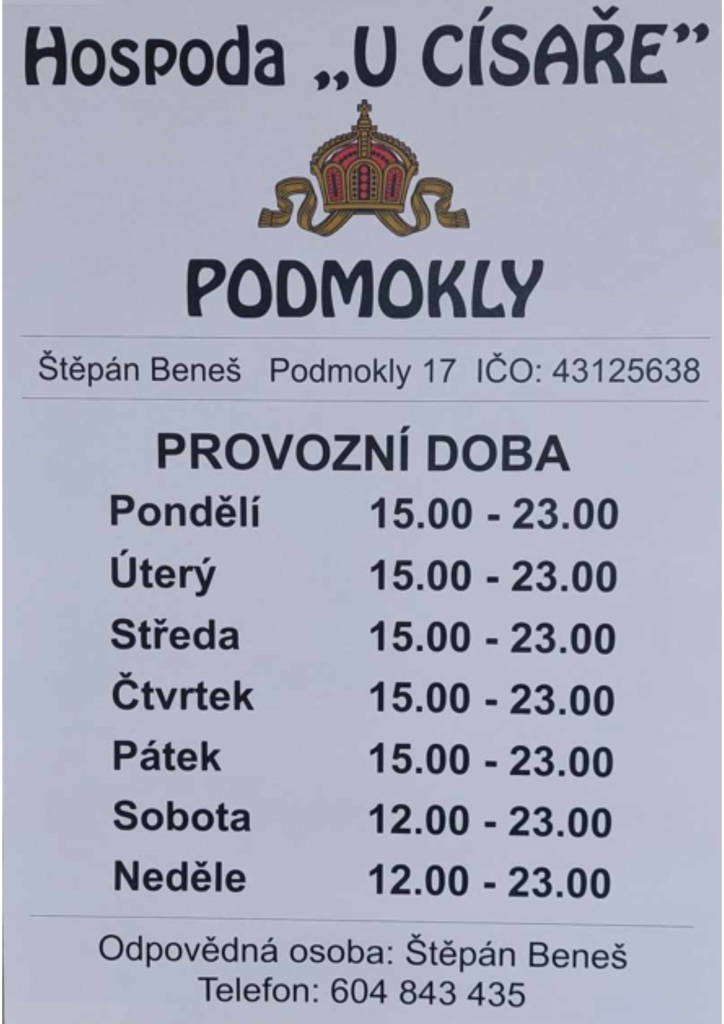 Otevírací doba hostince.