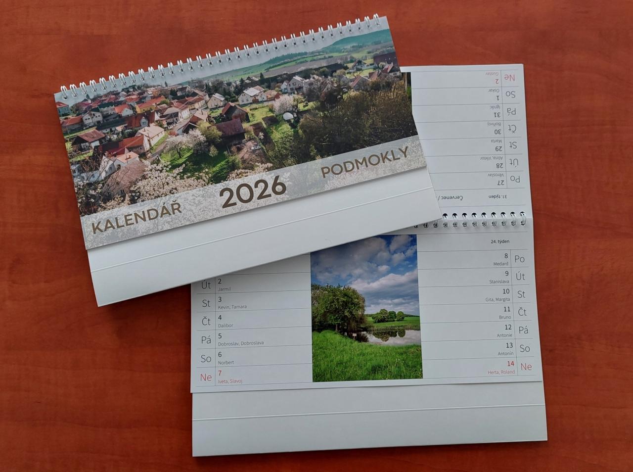 Při příležitosti oslavy 980 let obce Podmokly byl vydán kalendář na rok 2026. Tento kalendář je výjimečný díky autorským fotografiím paní Evy Foremanové www.animafoto.cz, které zachycují krásy naší obce. Kalendář si můžete zakoupit pro sebe i své blízké na obecním úřadě za cenu 100 Kč.