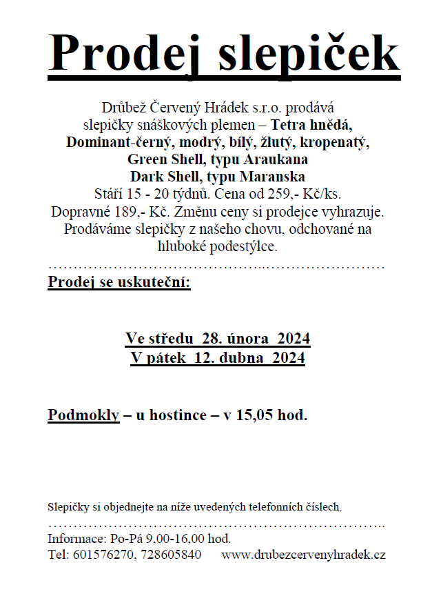 Prodej slepiček
