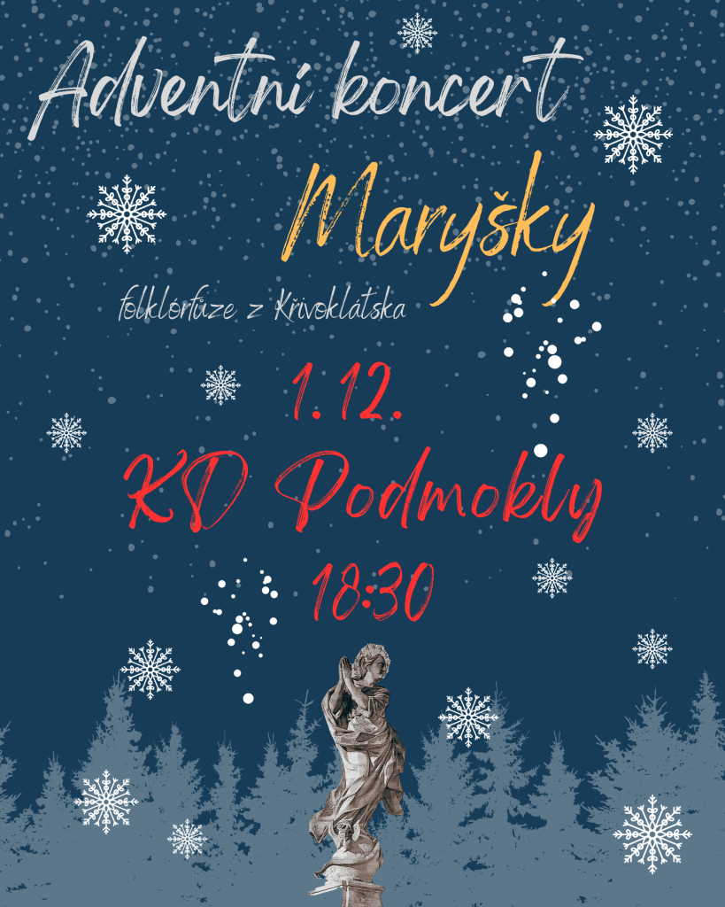 Srdečně vás zveme na tradiční rozsvícení vánočního stromečku. Těšit se můžete na vánoční jarmark, svařák, čaj i malé občerstvení. Vlastní hrnečky jsou již samozřejmostí. Od 18:30 hod vystoupí na sále KD skupina MARYŠKY.
