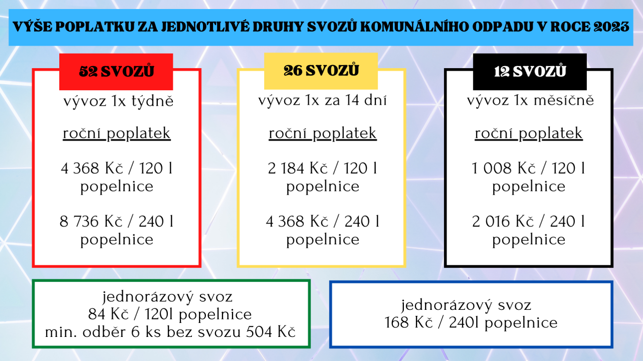Výše poplatku zůstala stejná jako v loňském roce. Poplatek je možno platit hotově na obecním úřadě nebo převodem.