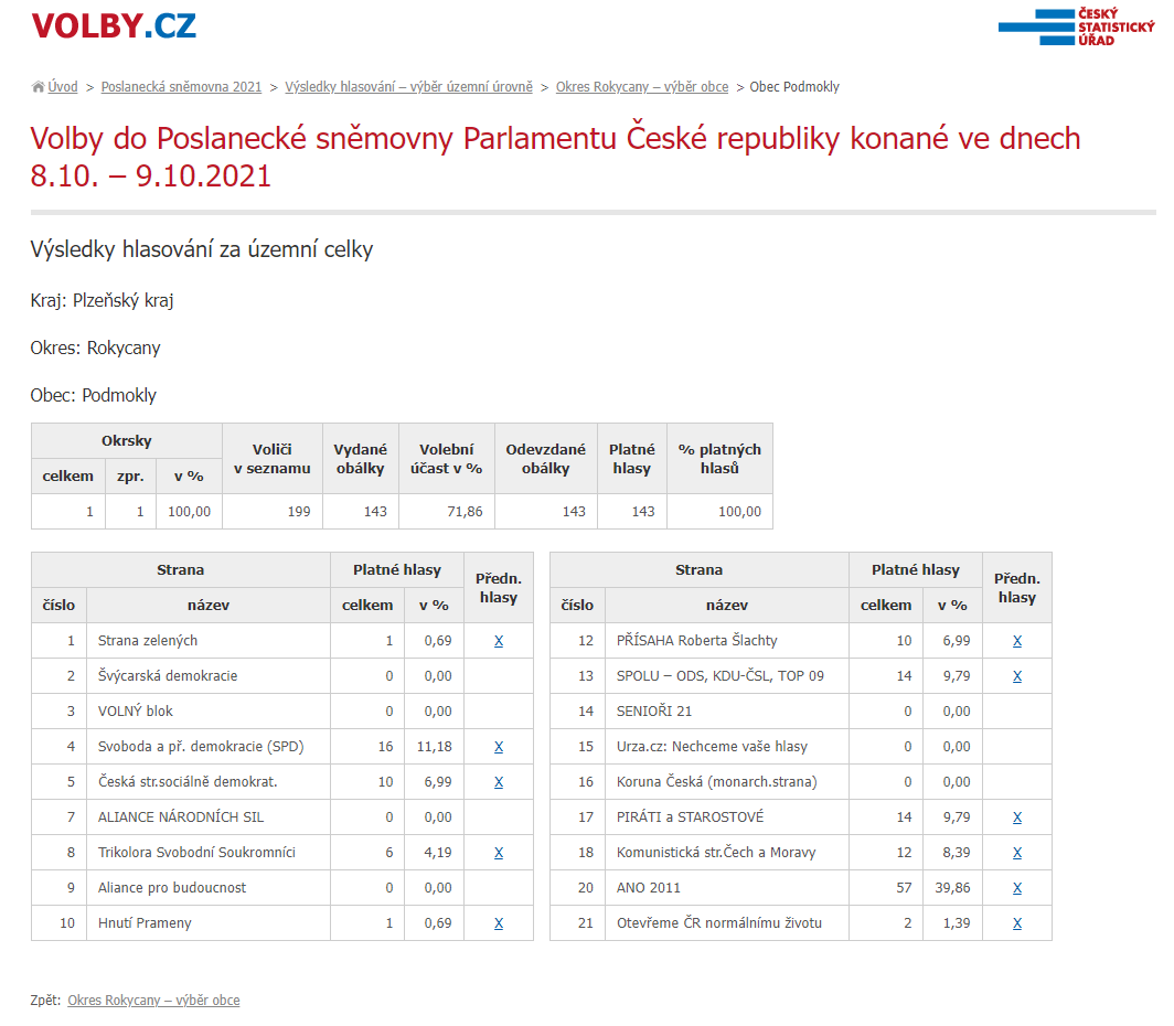 Počet voličů, kteří se dostavili k volbám: 143 (71,86%)