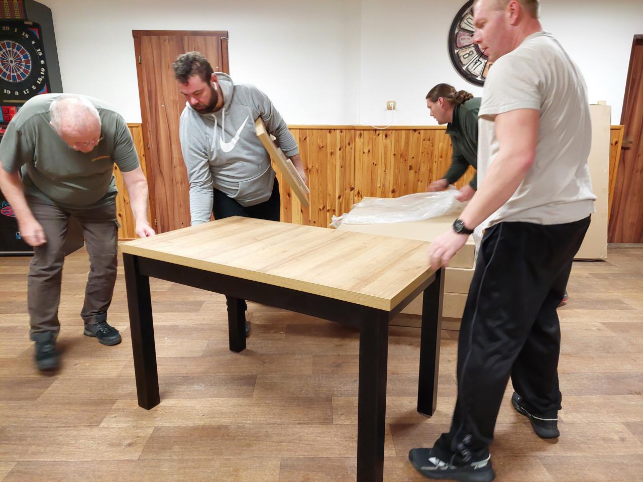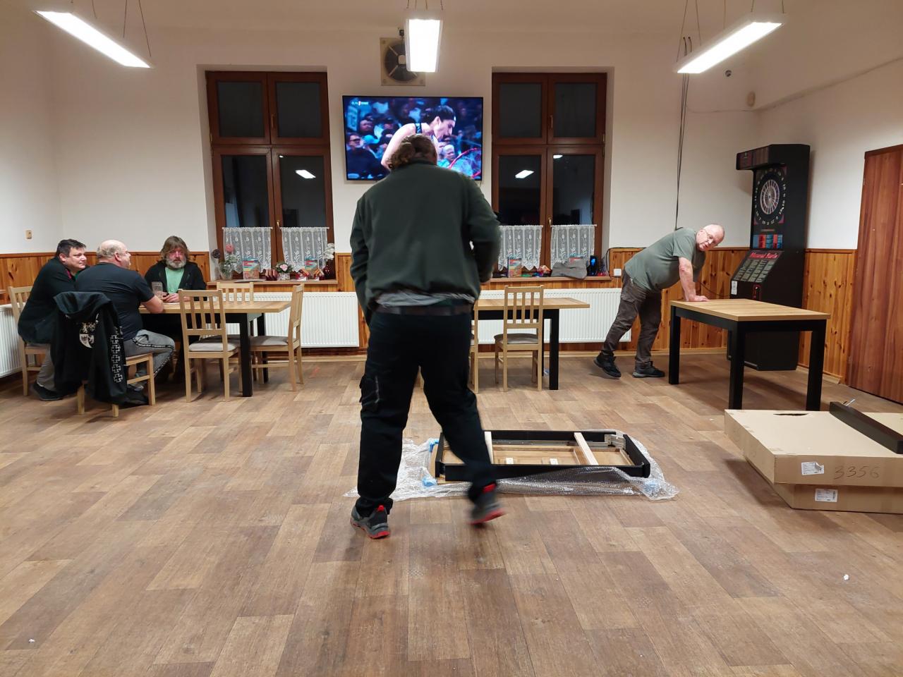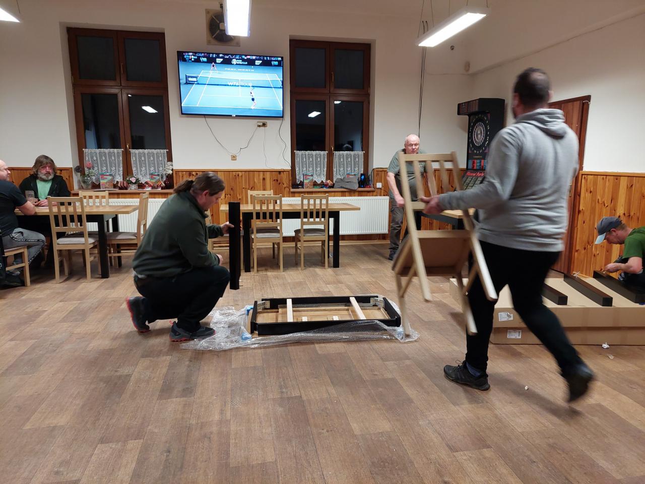 do výčepu, už byly potřeba. Brigáda na jejich vybalení a sestavení, 18. ledna.